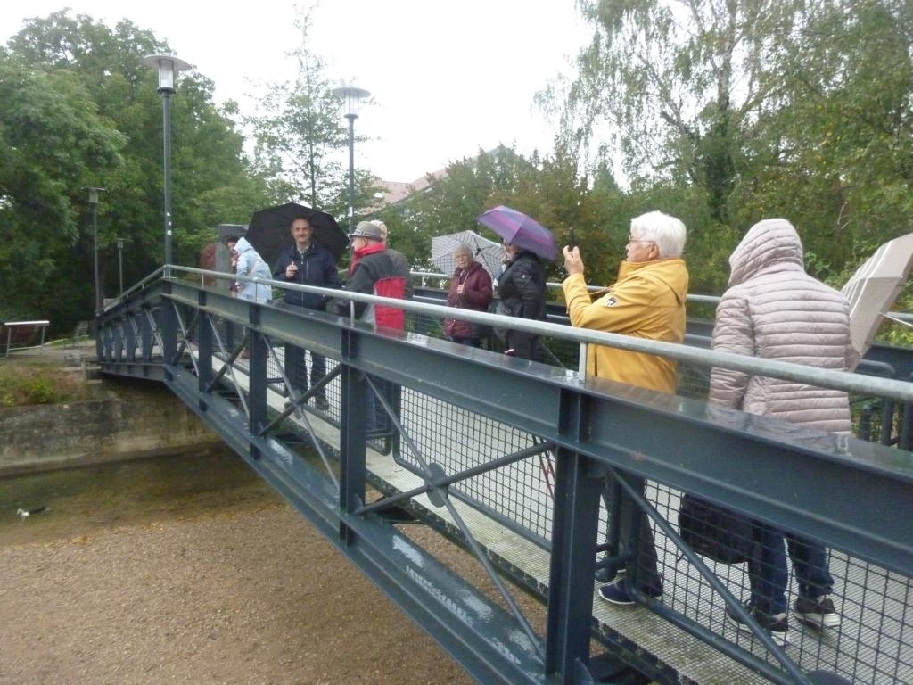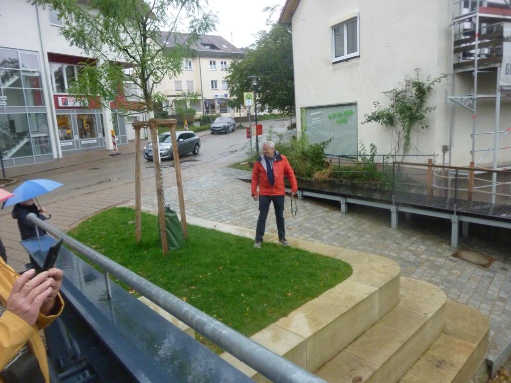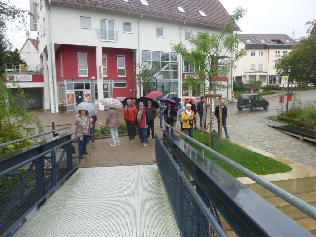 Nachdem alle in den 9er-Bussen verteilt waren, ging es Richtung Mössingen. Vor dem Frühstück im BäckStage war eine kleine Besichtigung am neu gestalteten Mössinger See noch auf dem Plan.