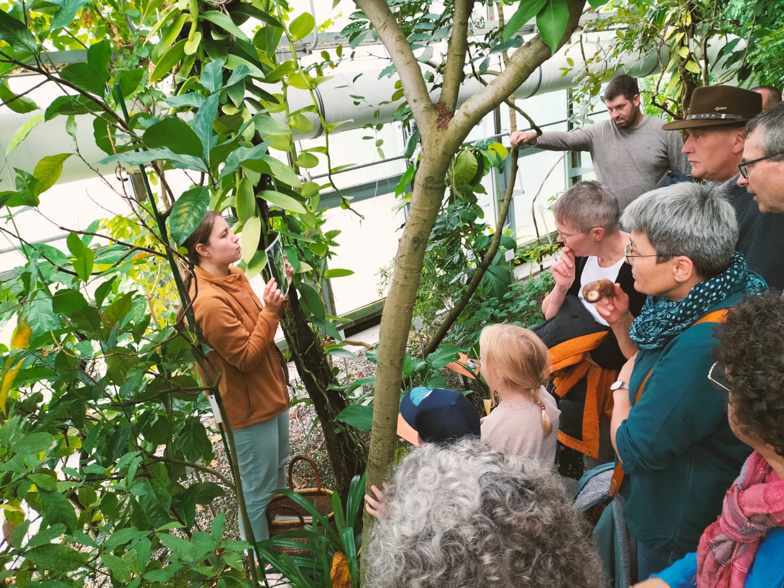 Gestärkt besuchten wir nun den Botanischen Garten in Tübingen. Der jederzeit kostenlose freizugängliche Garten mit seinen Gewächshäusern ließ die Anlage dank der Führung in einem neuen Licht erscheinen. Wo hat die Banane ihre Samen? Wie, aus was wird die Farbe karminrot hergestellt? Es wurden uns die verschiedenen Eigenschaften der Pflanzen erklärt.